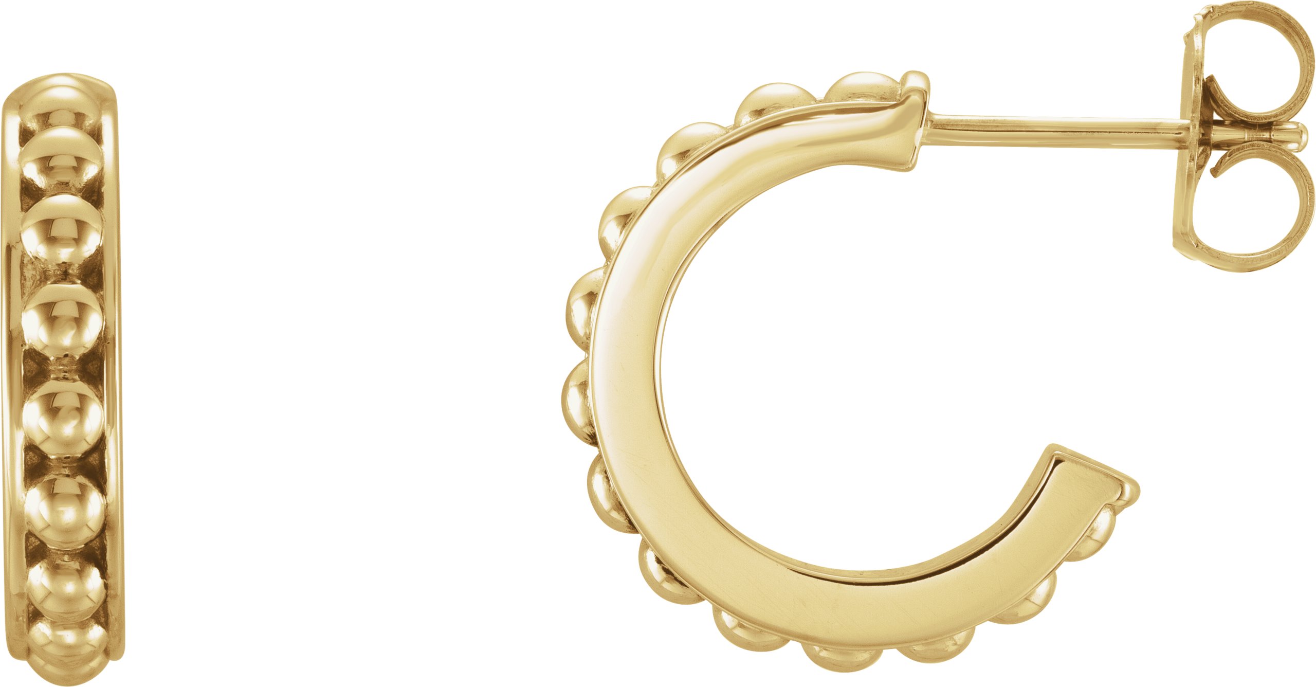 86424 / Earring / 14K Yellow / 15 Mm / 3 Mm / Pair / Friction Backs Included / Polished / Beaded Hoop Earrings