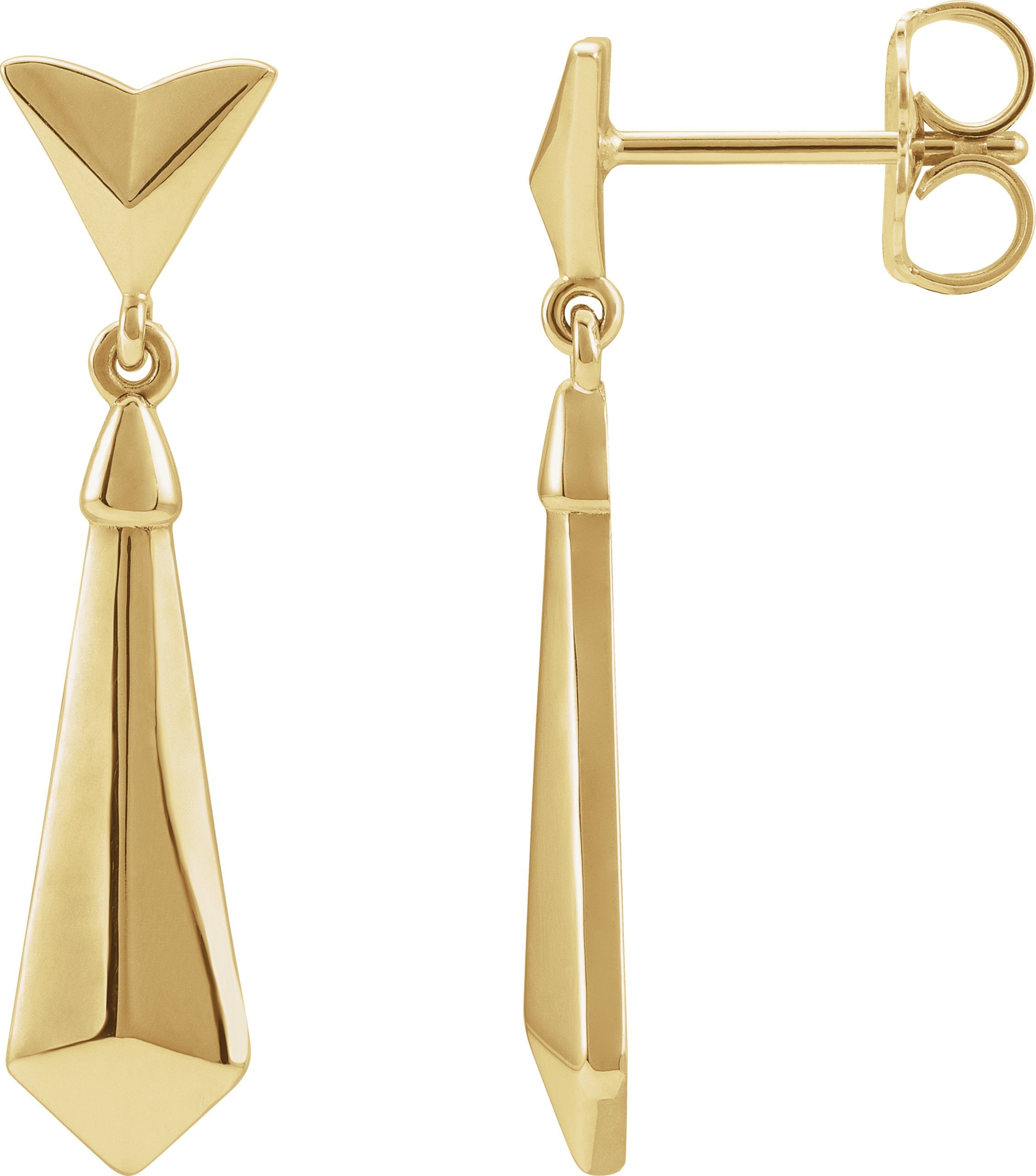 87149 / Earring / 14K Yellow / 27.2 X 6.3 Mm / Pair / Friction Backs Included / Polished / Geometric Dangle Earring With Backs