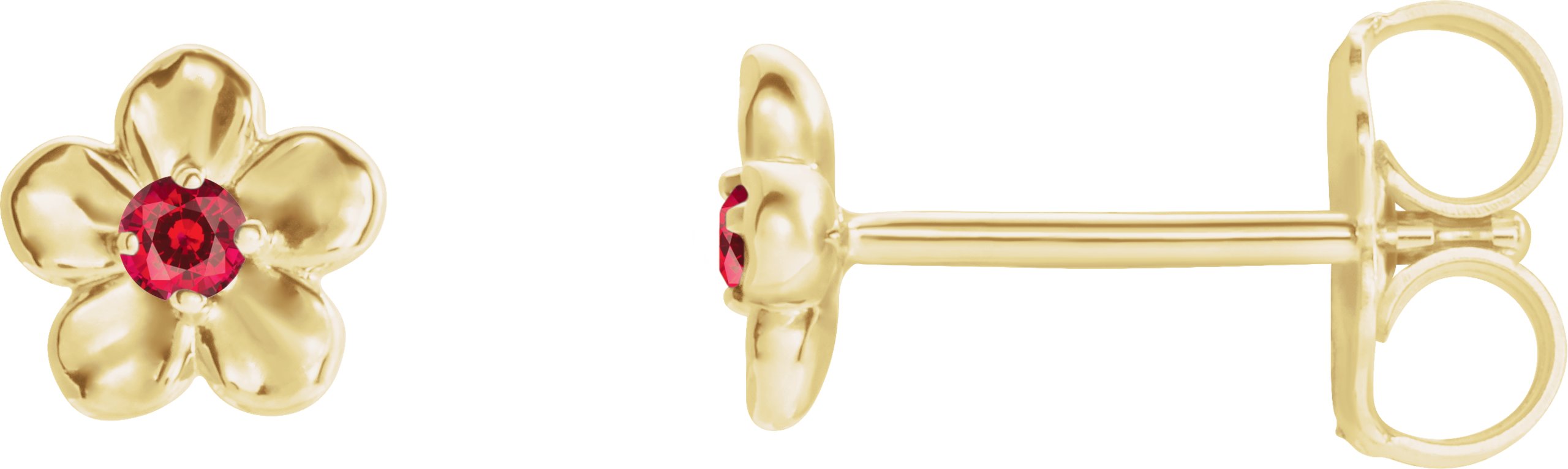 86737 / 14K Yellow / Set / Round / Imitation Ruby / Pair / 1.5 Mm / Friction / Friction Backs Included / 4-Prong / Polished / July Youth Imitation Birthstone Flower Earrings With Backs