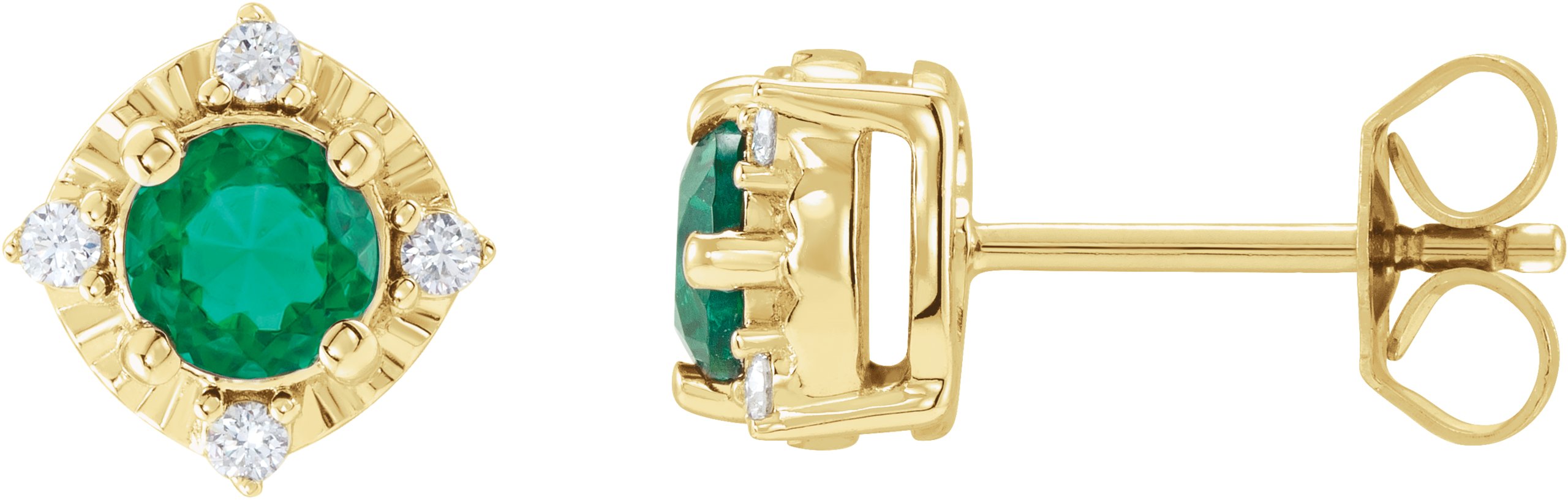 653713 / Earring / Set / Lab-Grown Emerald / Round / 4.5 Mm / 14K Yellow / Natural Diamond / Pair / Friction Backs Included / Polished / Lab-Grown Emerald And .08 Ctw Natural Diamond Earrings