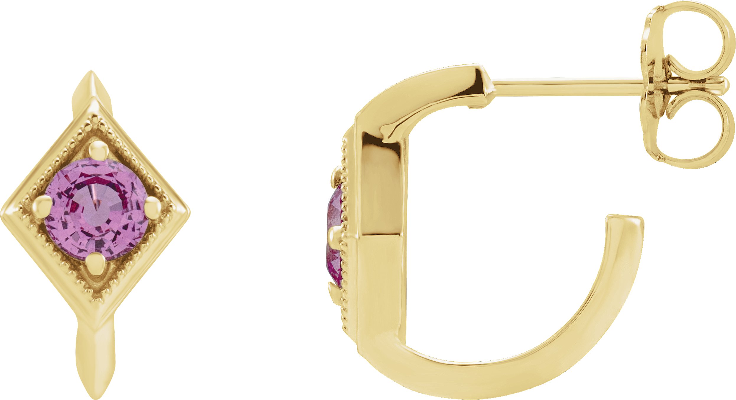 87157 / Set / Natural Pink Sapphire / Pair / 13.58 Mm / 14K Yellow / Friction Backs Included / Polished / Natural Pink Sapphire Earrings