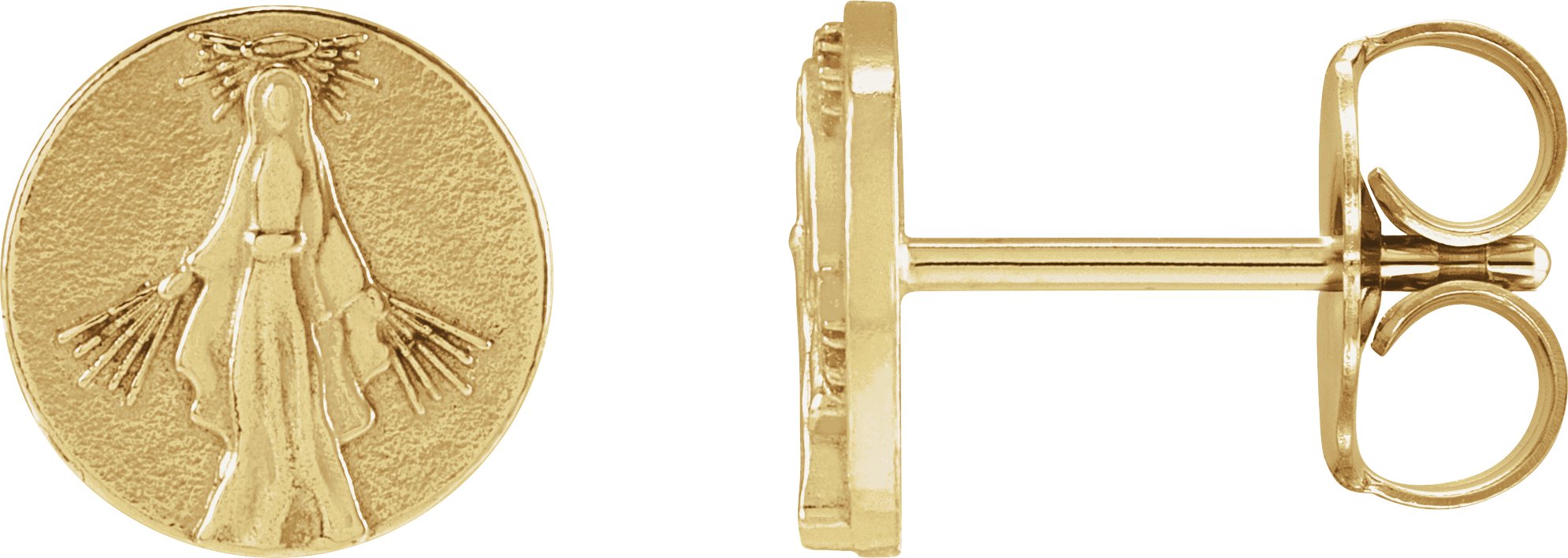88166 / Earring / 14K Yellow / 8 X 8 Mm / Pair / Friction Backs Included / Polished / Tiny Miraculous Medal Stud Earrings