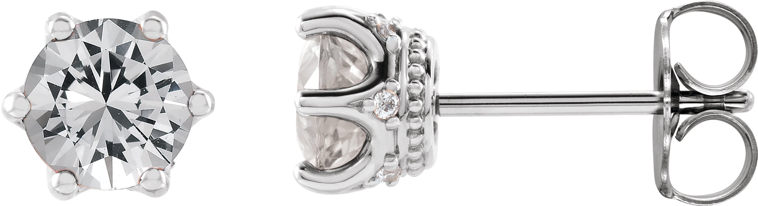 87134 / Earring / Set / Natural White Sapphire / Round / 4 Mm / Sterling Silver / Pair / Friction Backs Included / Polished / Natural White Sapphire And .03 Ctw Natural Diamond Earrings