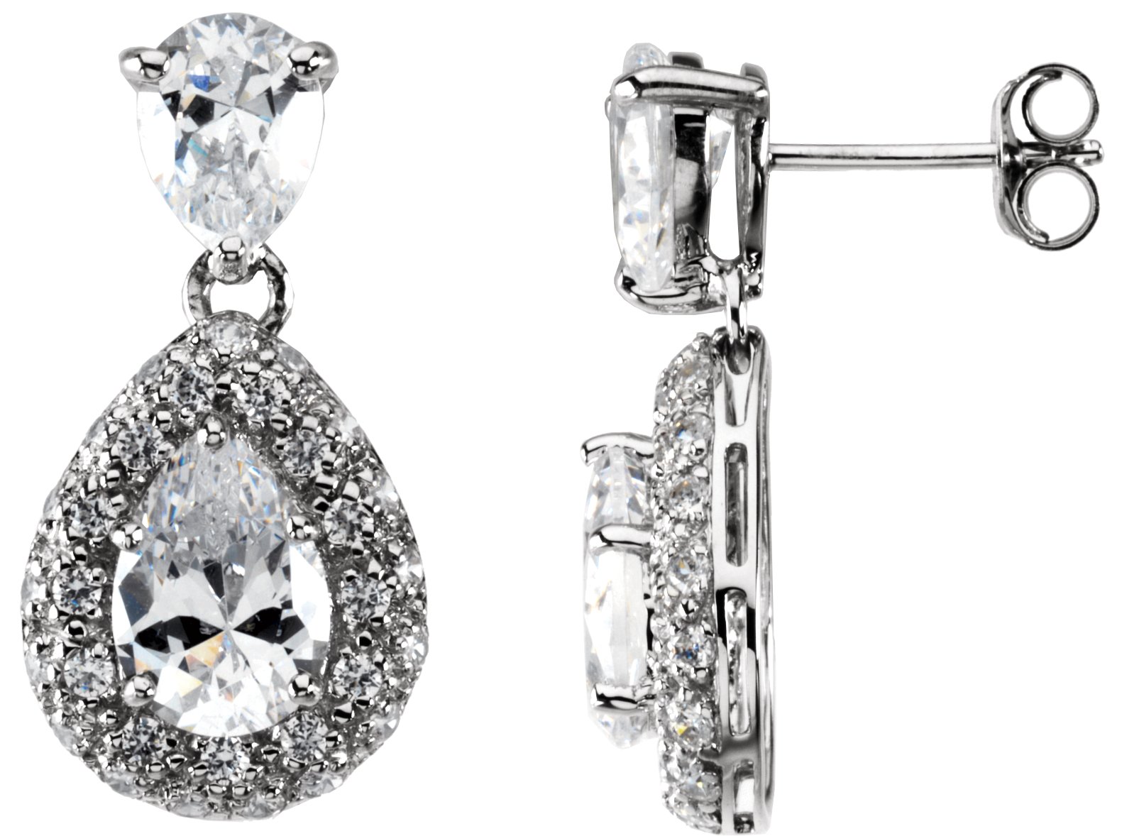 66985 / Sterling Silver / Pair / Polished / Cubic Zirconia Earrings