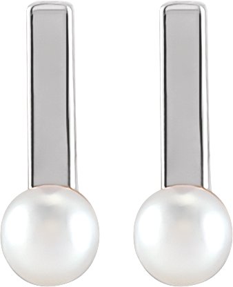 87490 / Earring / Set / Cultured White Seed Pearl / Pearl / 3 Mm / Sterling Silver / Pair / Friction Backs Included / Polished / Cultured White Seed Pearl Bar Earrings