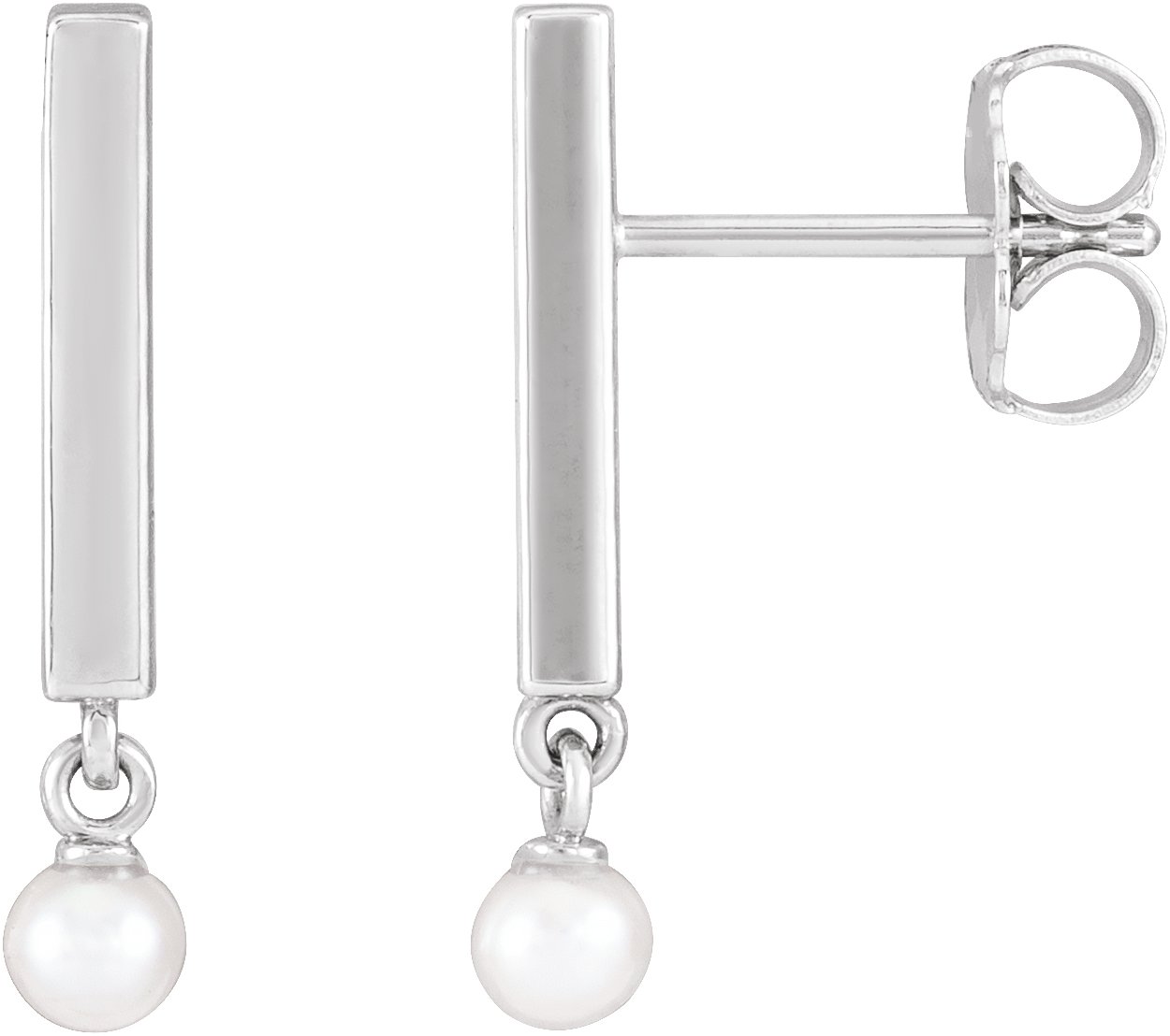 87504 / Earring / Set / Cultured White Seed Pearl / Pearl / 3.0-4.0 Mm / Sterling Silver / Pair / Friction Backs Included / Polished / Seed Pearl Bar Earrings
