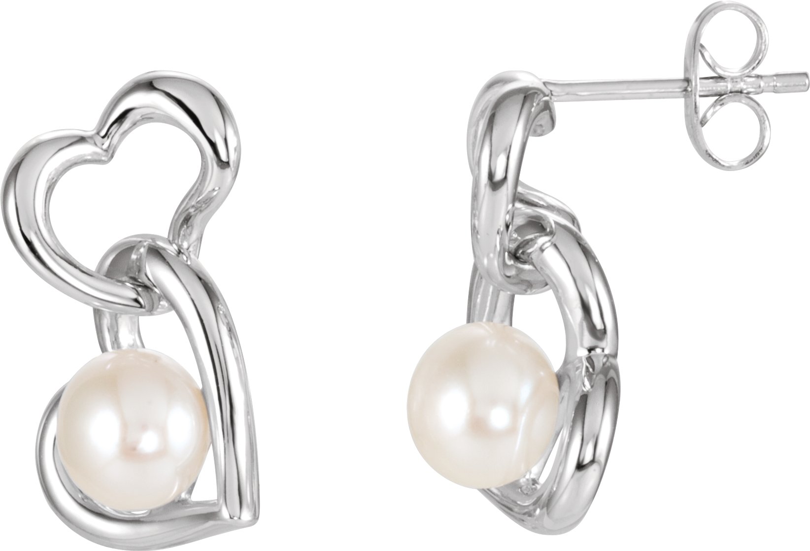 650113 / Sterling Silver / 17.9 Mm X 11.9 Mm / Pair / Polished / Freshwater Cultured Pearl Double Heart Earrings