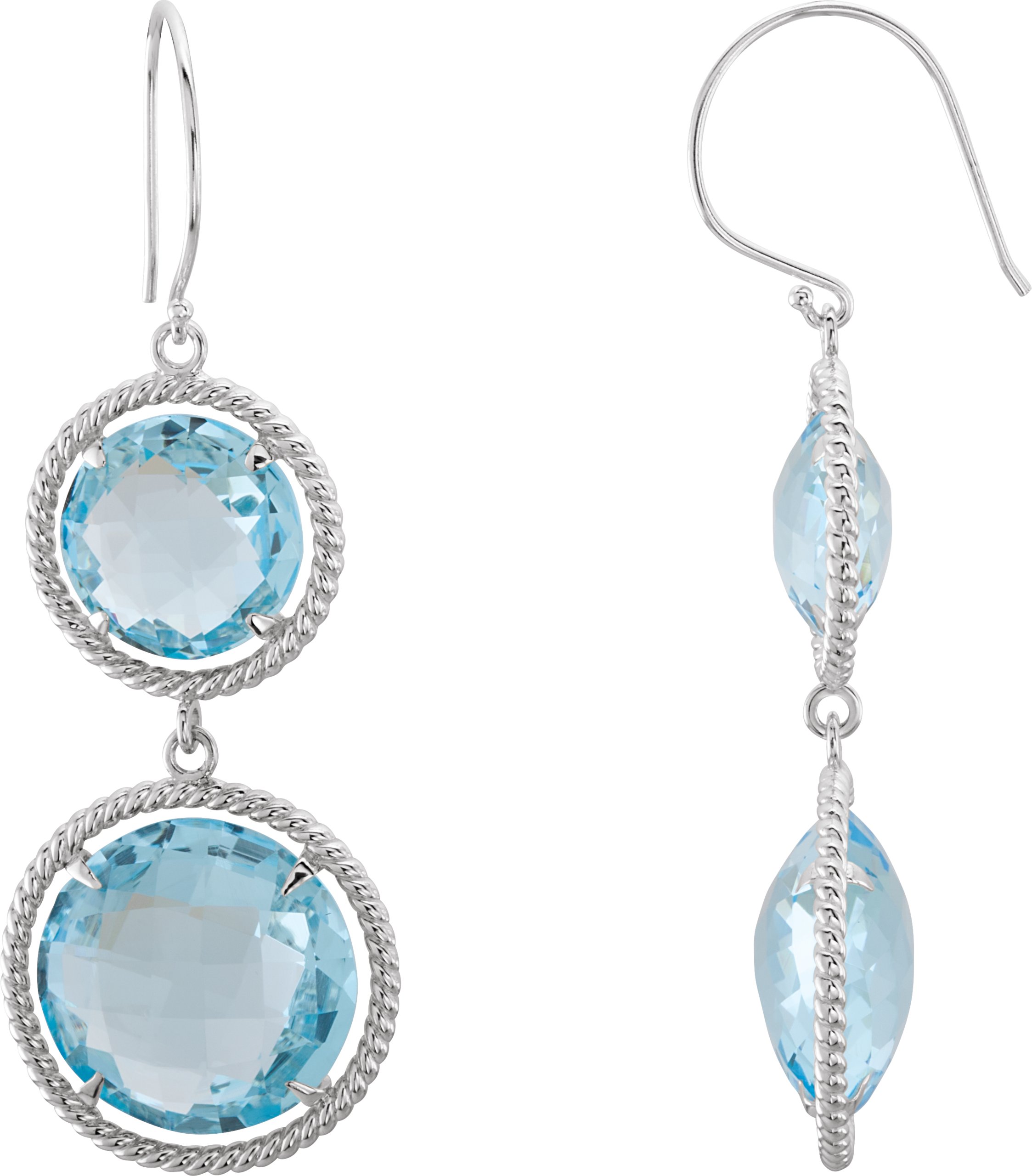 85640 / Earring / Set / Natural Sky Blue Topaz / Round / 16 Mm / Sterling Silver / Natural Sky Blue Topaz / Pair / Backless / Polished / Natural Sky Blue Topaz Rope Style Earrings