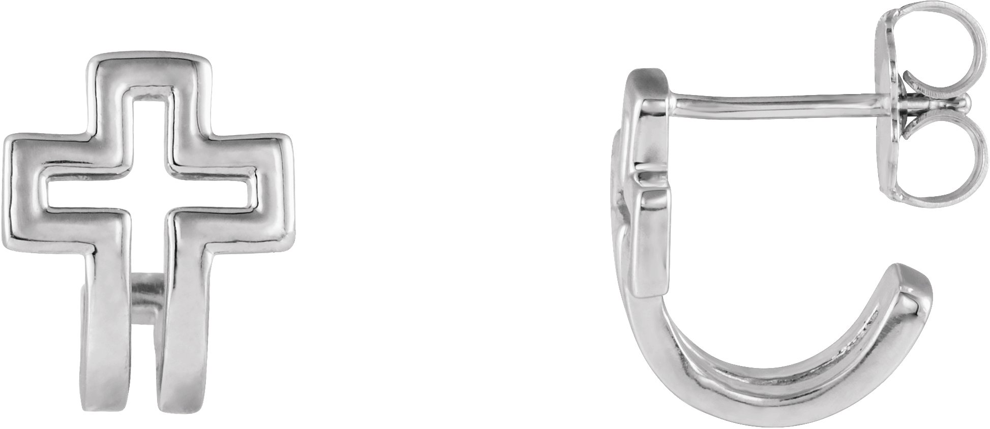 86669 / Earring / Sterling Silver / Pair / Friction Backs Included / Polished / Open Cross J-Hoop Earrings