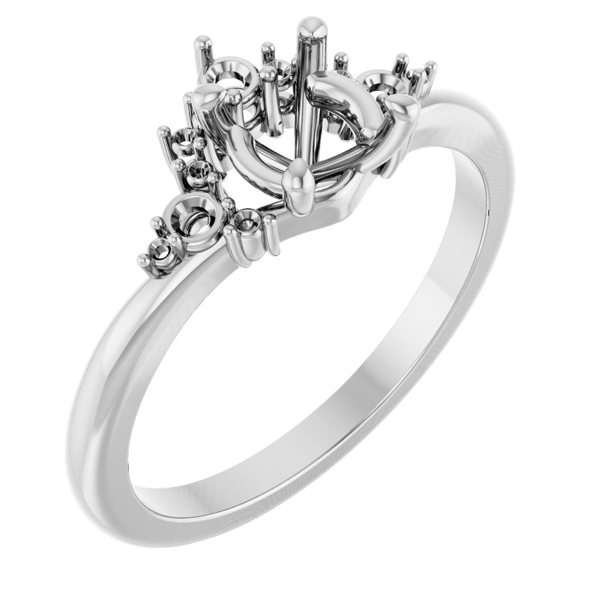 14K White 5.8 mm Round Accented Engagement Ring Mounting