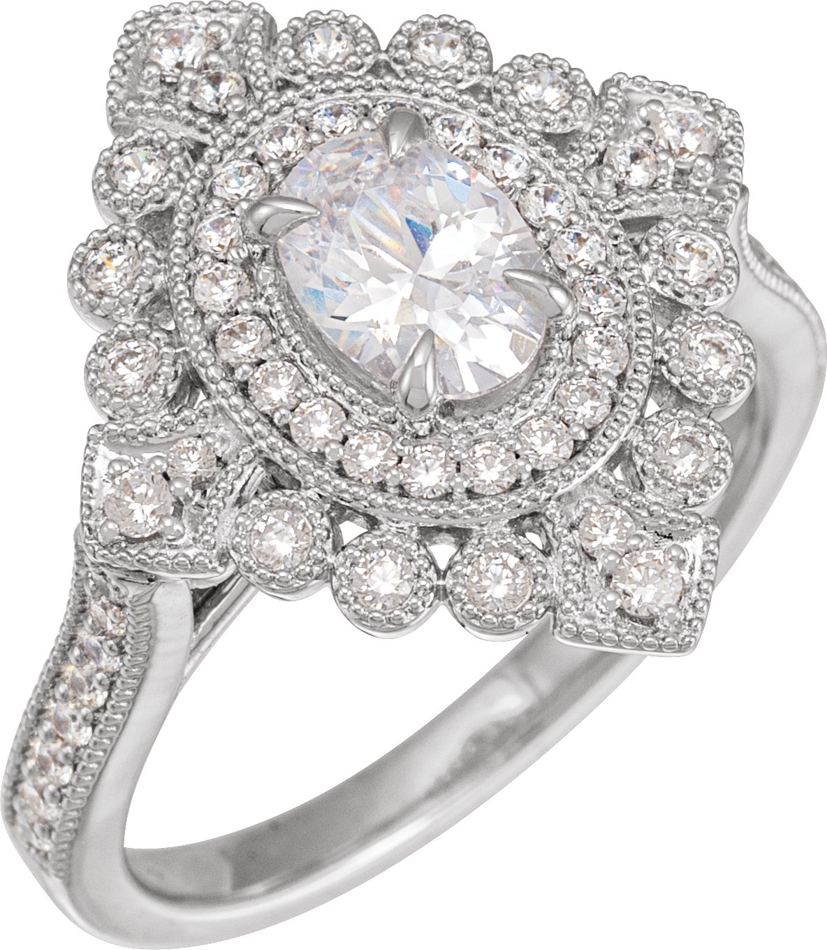 688815 / Engagement Ring / Semi-Set / 14K White / Oval / 7 X 5 Mm / Natural Diamond / Polished / 1/2 Ctw Natural Diamond Semi-Set Engagement Ring