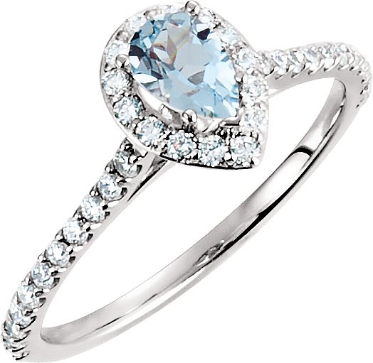 68871 / Engagement Ring / Set / Natural Aquamarine / 6 X 4 Mm / 14K White / Polished / Aquamarine And 3/8 Ctw Natural Diamond Ring