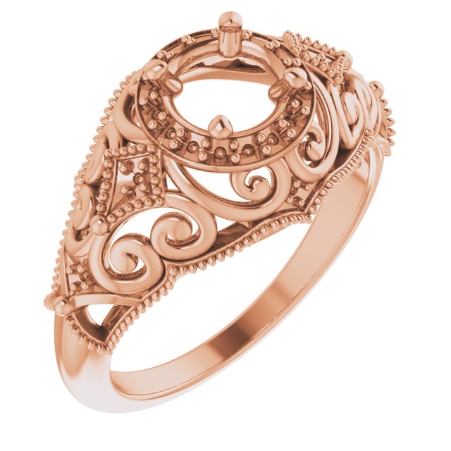 14K Rose 5.8 mm Round .08 CTW Diamond Semi-Set Vintage-Inspired Engagement Ring
