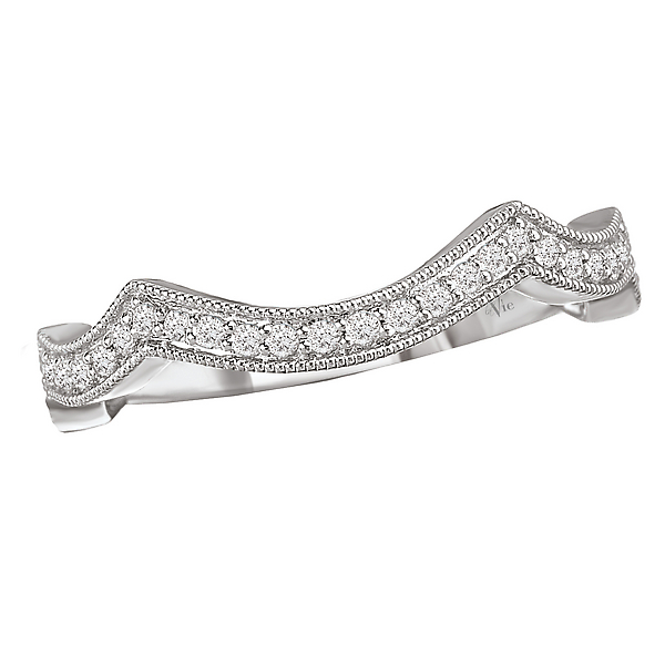 Scalloped Round Diamond Band in 14kt White Gold Milgrain Detail (D.1/5 carat total weight)