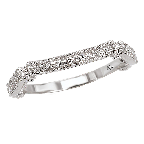 Curved Matching Diamond Wedding Band in 14kt White Gold with Milgrain Detail. (D.1/7 carat total weight)