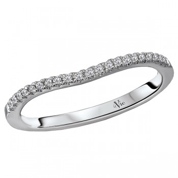 This curved wedding band features round faceted diamonds set in 14kt white gold band. (D .08 carat total weight)