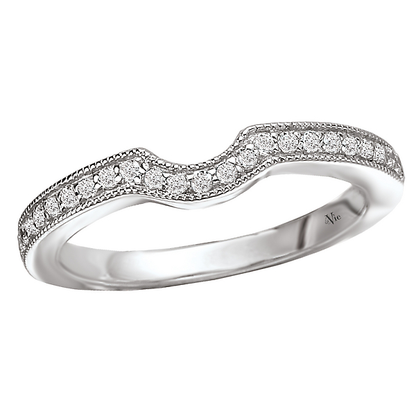 Curved Matching Diamond Wedding Band in 14kt White Gold with Milgrain Detail. (D.1/5 carat total weight)