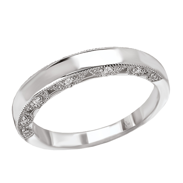 Matching Diamond Wedding Band in 14kt White Gold with Milgrain Detail. (D.1/10 carat total weight)