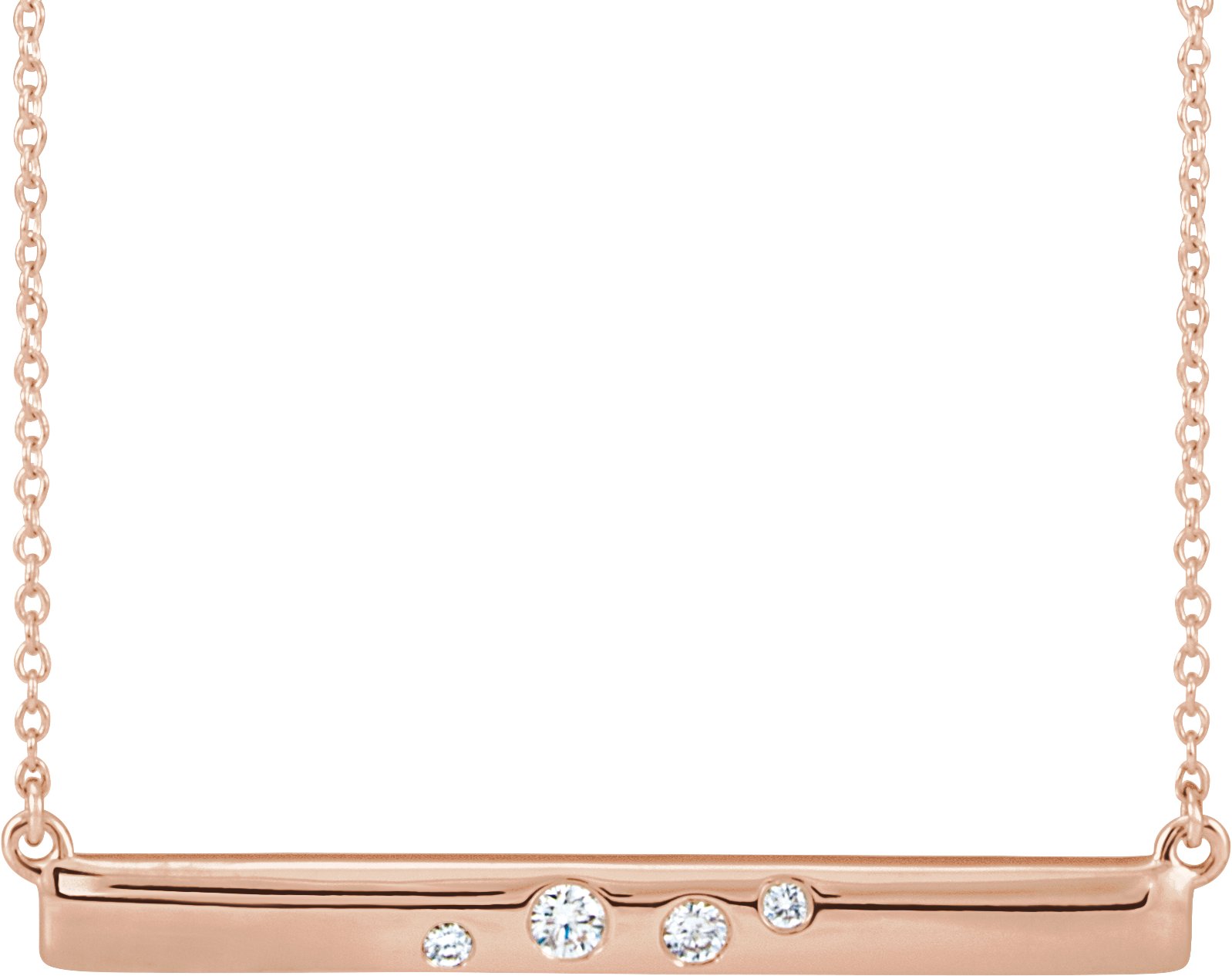 652437 / Necklace / Set / 14K Rose / Round / Natural Diamond / Natural Diamond / I1, H+ / 16-18 In / Polished / 1/10 Ctw Natural Diamond Bar Necklace