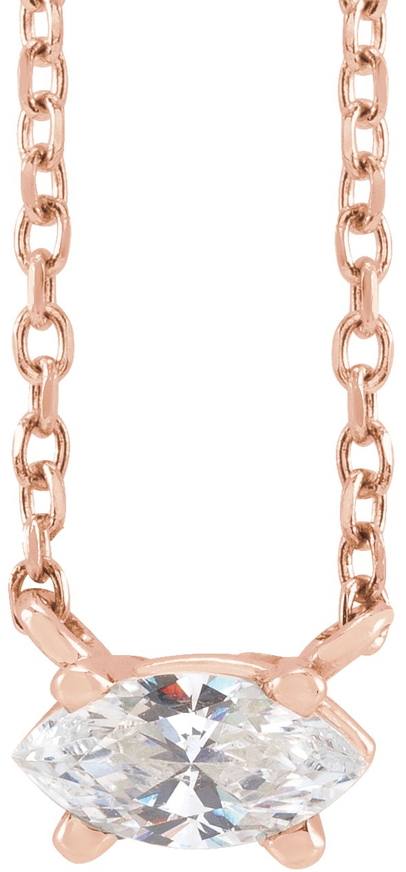 87568 / Necklace / Set / 14K Rose / Marquise / Natural Diamond / 6 X 3Mm :: 1/4 Ct / I1, G-H / 16-18 In / Polished / 1/4 Ct Natural Diamond Solitaire Necklace