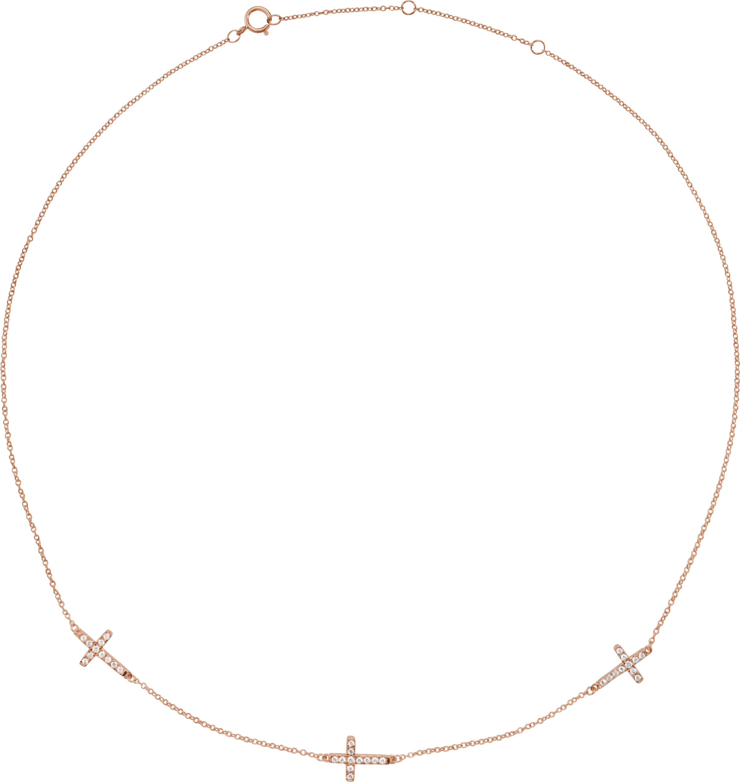 653452 / Set / 14K Rose / 3-Station / 16-18 In / Polished / 1/4 Ctw Natural Diamond 3-Station Cross Necklace