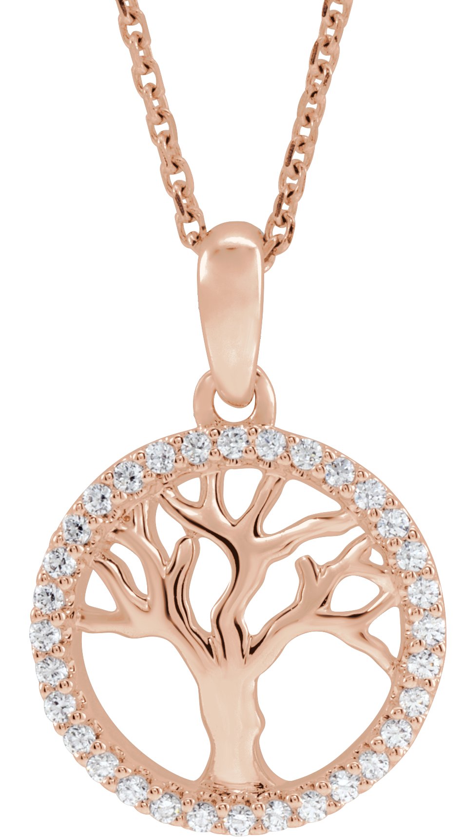653607 / Necklace / Set / 14K Rose / Round / Natural Diamond / 1.05Mm :: 1/5 Ctw / I1, H+ / 16-18 In / Polished / Accented Tree Of Life Necklace