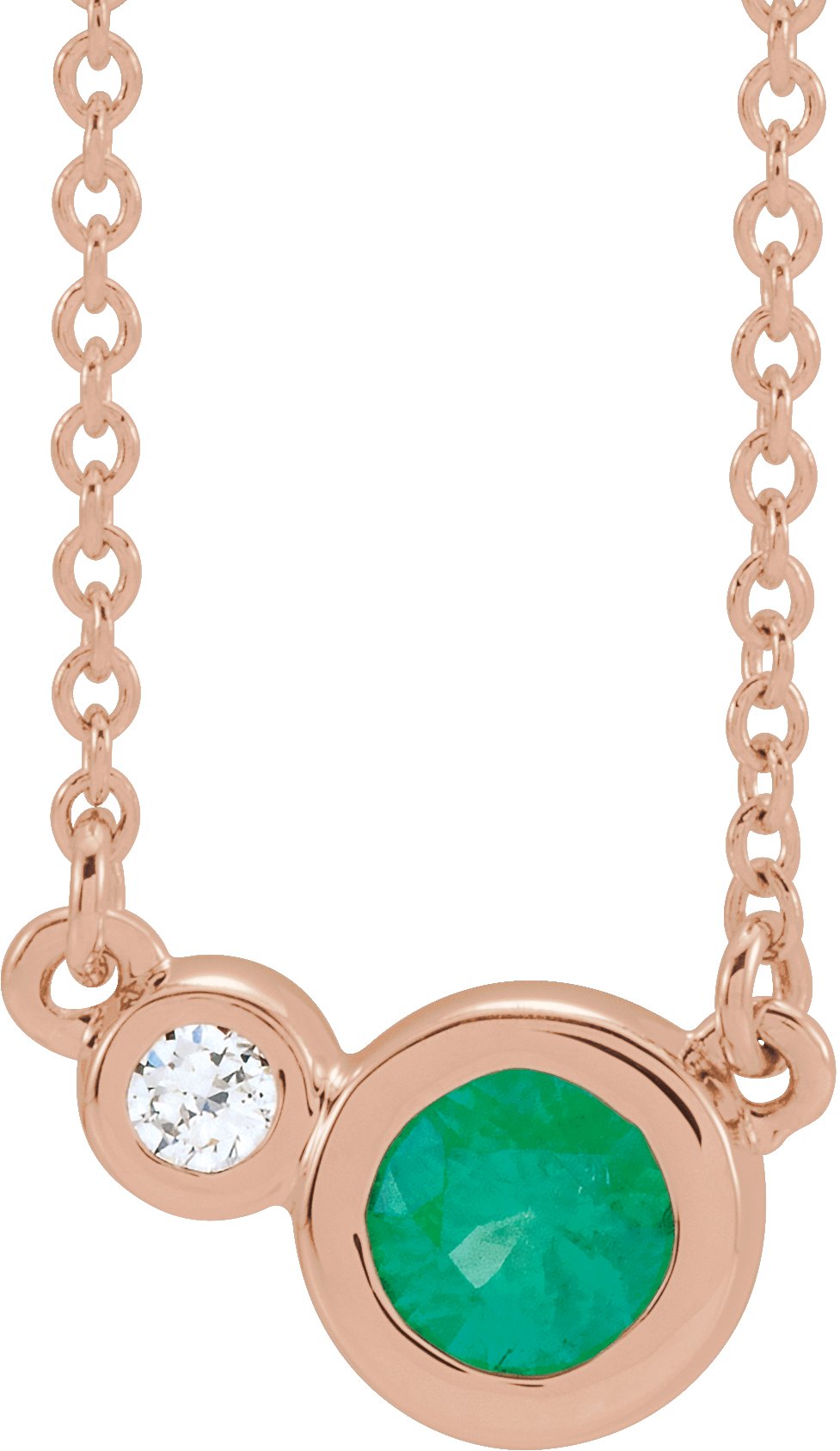 86793 / Necklace / Set / 14K Rose / Round / Natural Emerald / 3Mm :: 0.02 Ct / Natural Diamond / I1, G-H / 18 In / Polished / Natural Emerald And .02 Ctw Natural Diamond Necklace