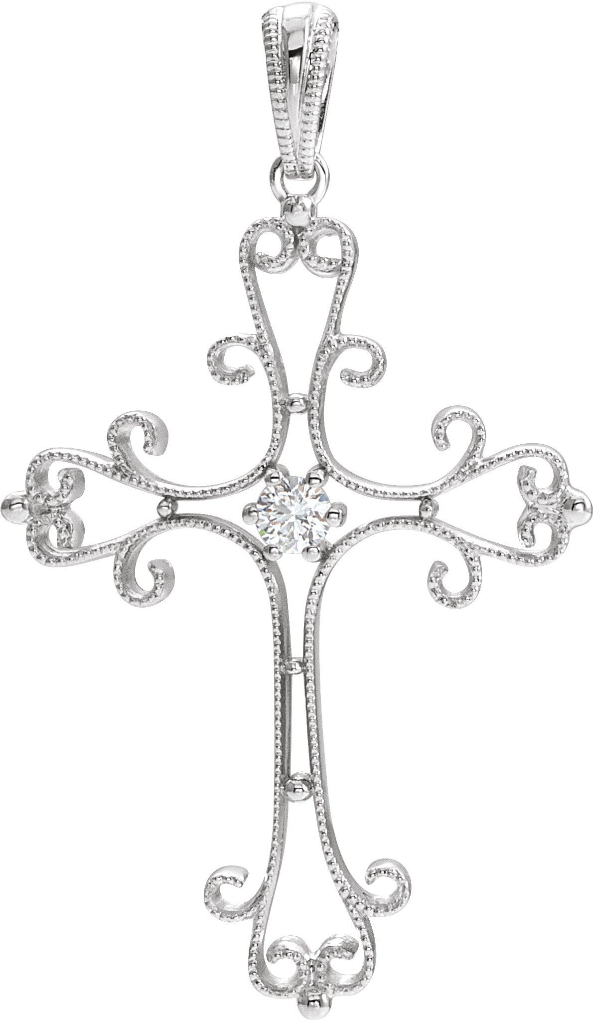 R42376 / Pendant / Set / 14K White / Polished / .06 Ctw Diamond Vintage Inspired Cross Pendant