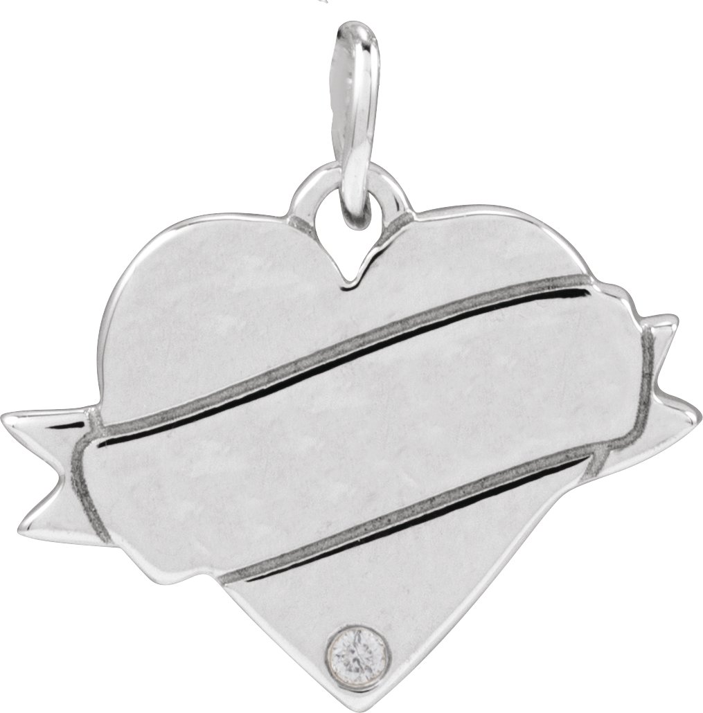 14K White .005 CT Natural Diamond Engravable Heart Pendant