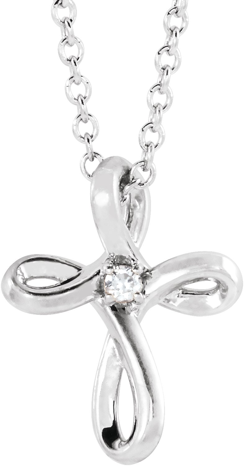 14K White .015 CTW Natural Diamond Cross 16-18" Necklace
