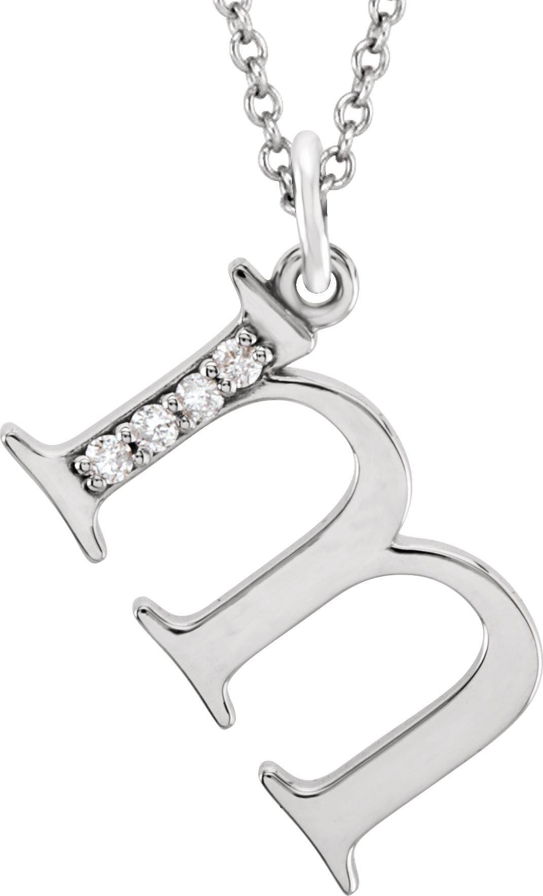 85803 / Necklace / Set / 14K White / Initial M / Natural Diamond / Round / 1 Mm / I1, G-H :: 0.02 Ctw / 16 In / Polished / .02 Ctw Natural Diamond Initial Necklace