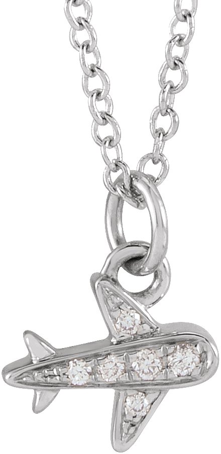 653723 / Necklace / Set / 14K White / Round / Natural Diamond / X 1Mm :: 0.025 Ctw / I1, H+ / 16-18 In / Polished / .025 Ctw Natural Diamond Petite Airplane Necklace