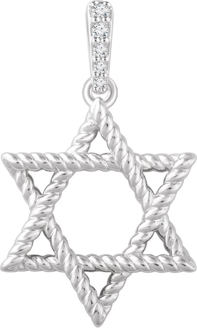 14K White .025 CTW Natural Diamond Star of David Pendant
