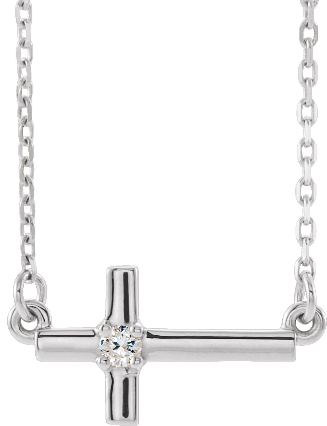 R42356 / Necklace / Set / 14K White / Round / Natural Diamond / 2Mm :: 0.03 Ct / I1, G-H / 16-18 In / Polished / .03 Ct Natural Diamond Sideways Cross Necklace