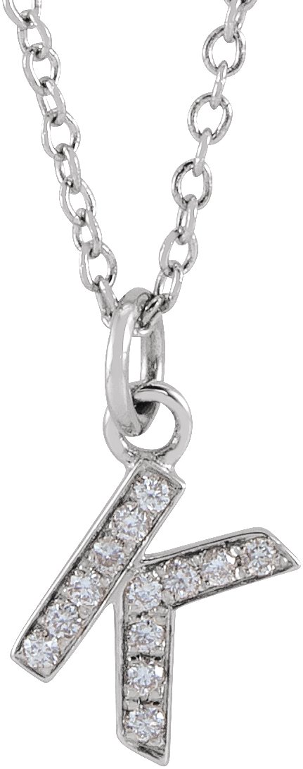 653725 / Necklace / Set / 14K White / Initial K / Natural Diamond / Round / .85 Mm / I1, H+ :: 0.045 Ctw / 16-18 In / Polished / .045 Ctw Natural Diamond Petite Initial Necklace