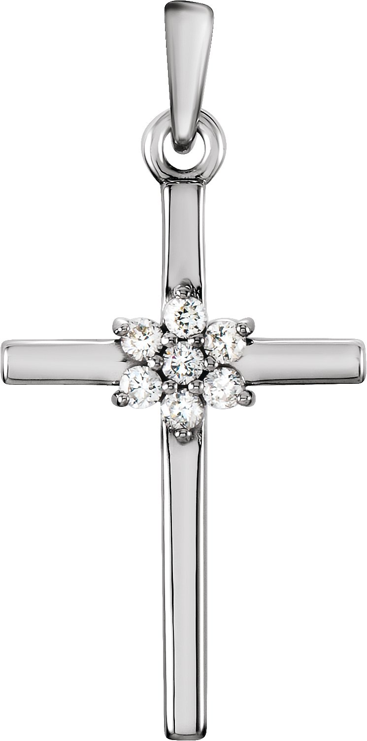 R42324 / Pendant / Set / 14K White / Round / Natural Diamond / 1.3Mm :: 0.06 Ctw / I1, G-H / Polished / .06 Ctw Natural Diamond Cross Pendant