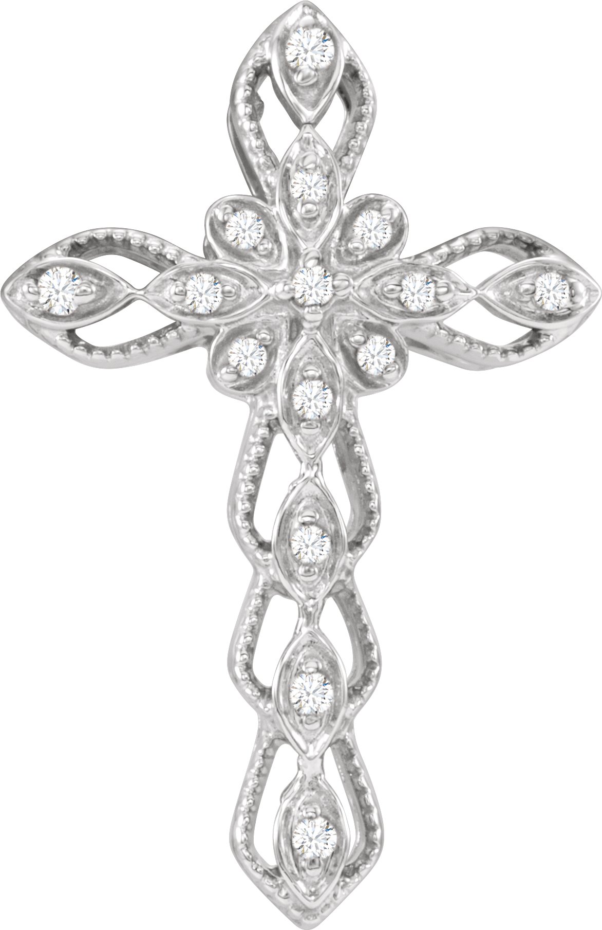 651744 / Pendant / Set / 14K White / Round / Natural Diamond / I1, H+ / Polished / .07 Ctw Natural Diamond Cross Pendant
