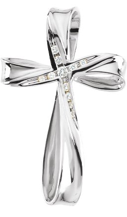 R41060 / Set / 14K White / Polished / .08 Ctw Cross Diamond Pendant