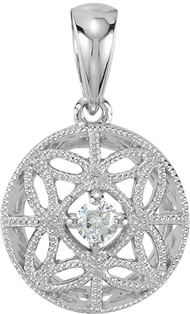 14K White 1/10 CT Diamond Filigree Pendant