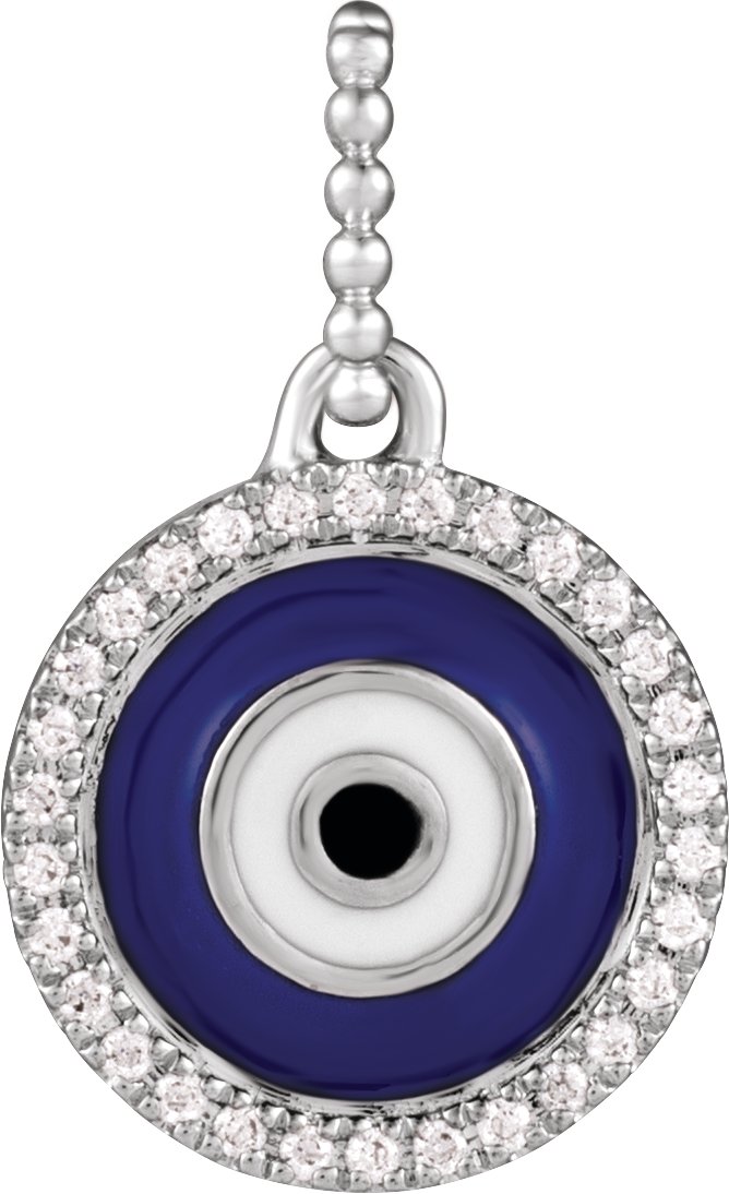 R50070 / Pendant / Set / 14K White / 17.7 X 10.8 Mm / Polished / 1/10 Ctw Natural Diamond Blue Enameled Evil Eye Pendant