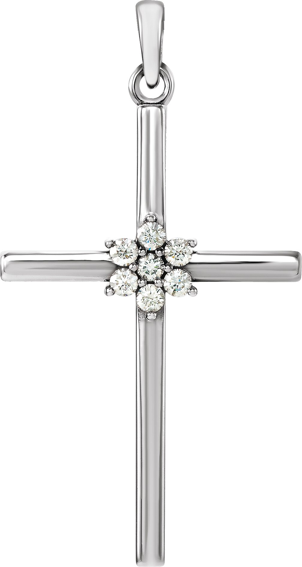 R42324 / Pendant / Set / 14K White / Round / Natural Diamond / 1.5Mm :: 1/10 Ctw / I1, G-H / Polished / 1/10 Ctw Natural Diamond Cross Pendant