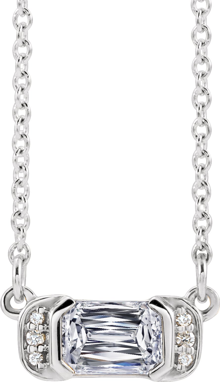 86750 / Necklace / Set / 14K White / Emerald / Natural Diamond / 6 X 4Mm :: 1/2 Ctw / Natural Diamond / Si2-Si3, I1, Ghi / 16 In / Polished / 1/2 Ctw Natural Diamond Bar Necklace