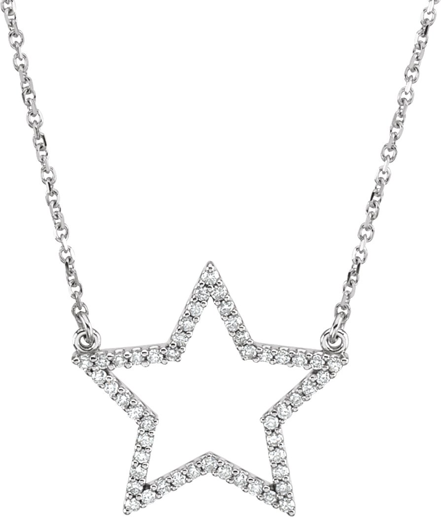 66414 / Necklace / Set / 14K White / Round / Natural Diamond / 1Mm :: 1/5 Ctw / I1, G-H / 16 In / Polished / 1/5Ctw Natural Diamond Star Necklace