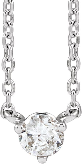 14K White 1/6 CT Natural Diamond 3-Prong 18" Necklace