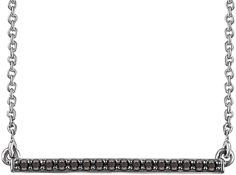 651738 / Necklace / Set / 14K White / Round / Natural Black Diamond / 1.3Mm :: 1/6 Ctw / Opaque, Black / 16-18 In / Polished / 1/6 Ctw Black Natural Diamond Bar Necklace With Rho Plate