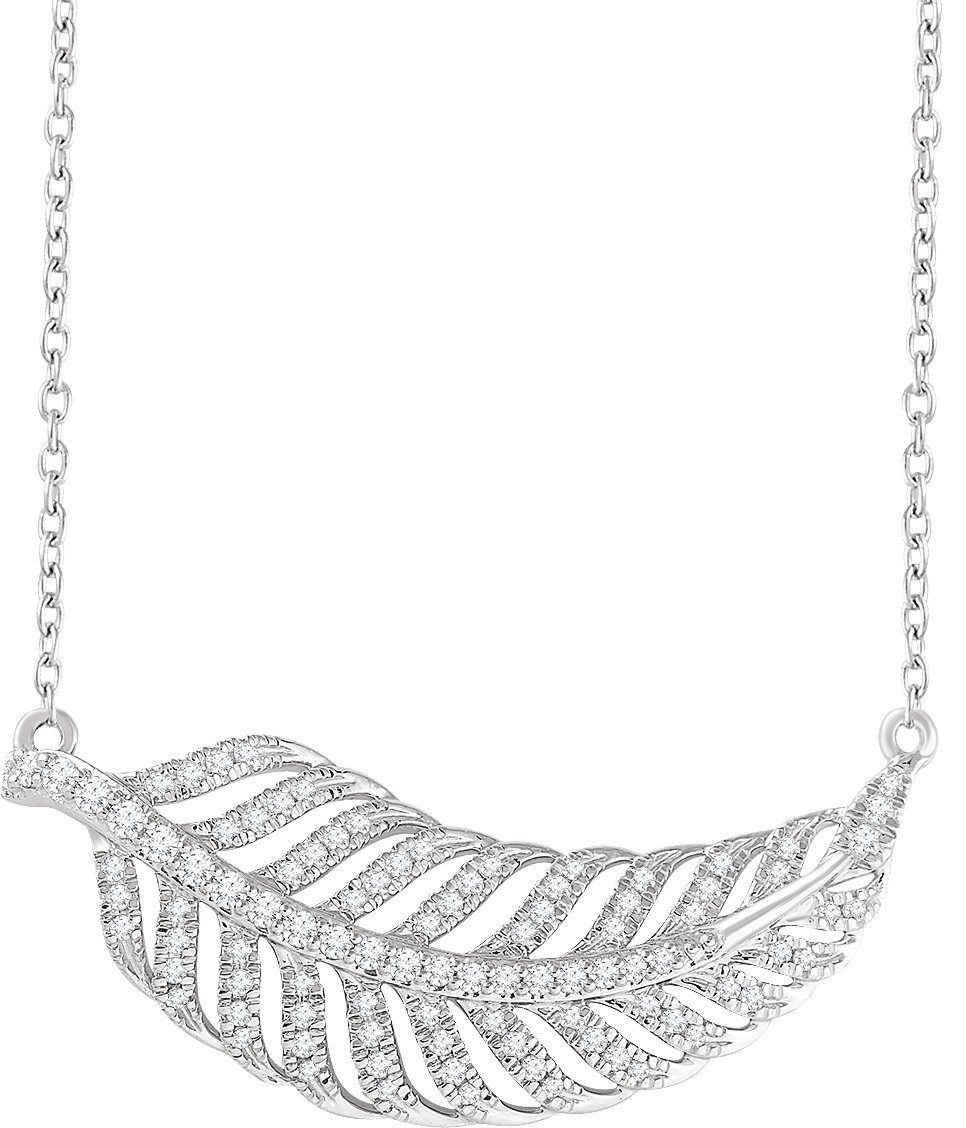 652702 / Necklace / Set / 14K White / Round / Natural Diamond / 1.3Mm :: 3/8 Ctw / Natural Diamond / I1, H+ / 16-18 In / Polished / 3/8 Ctw Natural Diamond Leaf Necklace