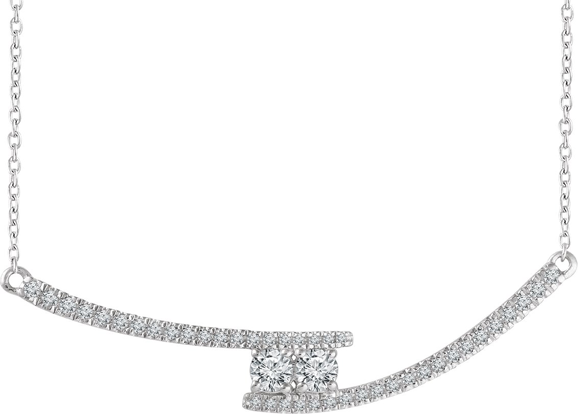 14K White 3/8 CTW Natural Diamond Two-Stone Bar 16-18" Necklace