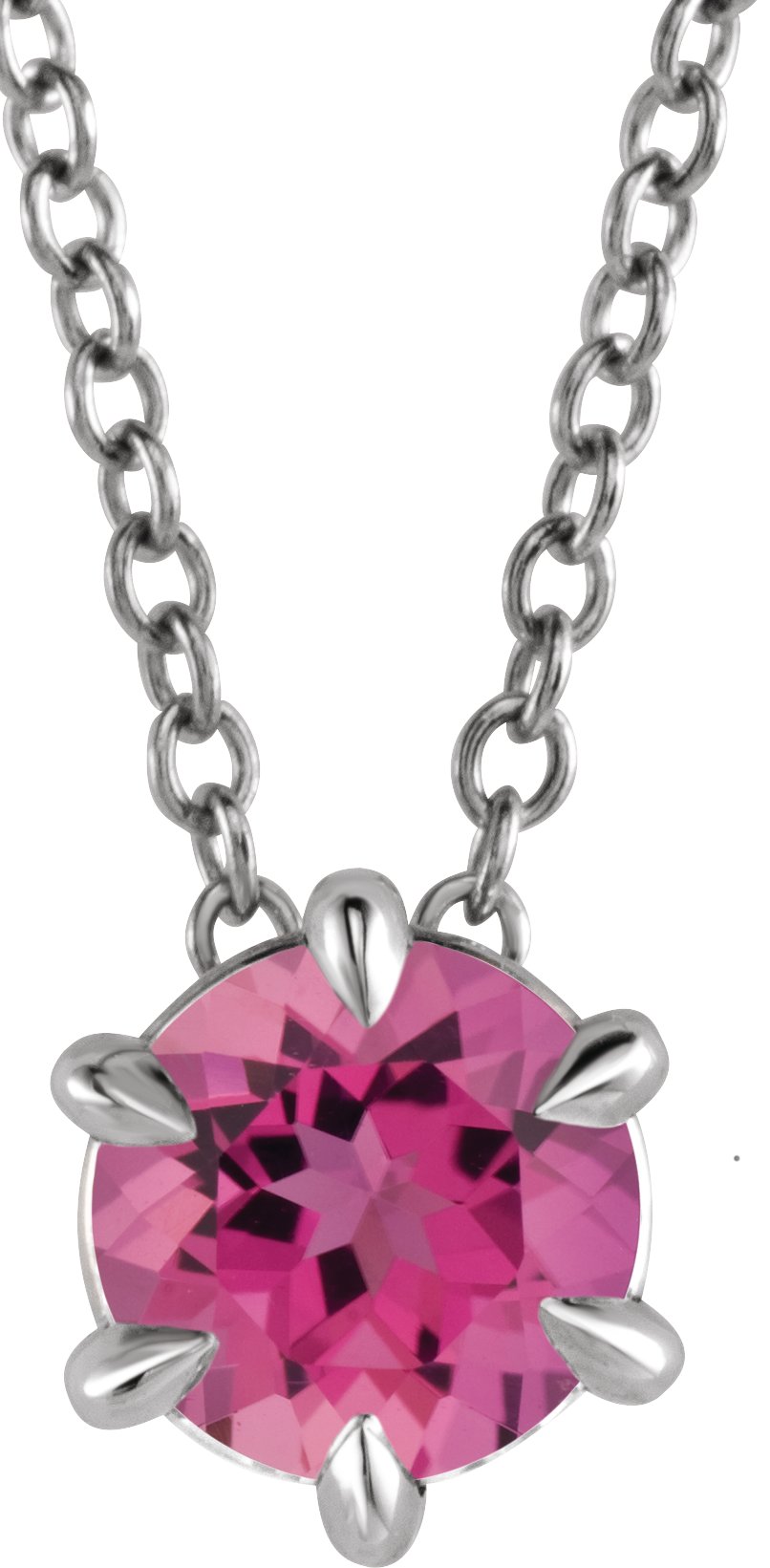 87126 / Necklace / Set / 14K White / Round / Natural Pink Tourmaline / 6 Mm / 16-18 In / Polished / Natural Pink Tourmaline Solitaire Necklace