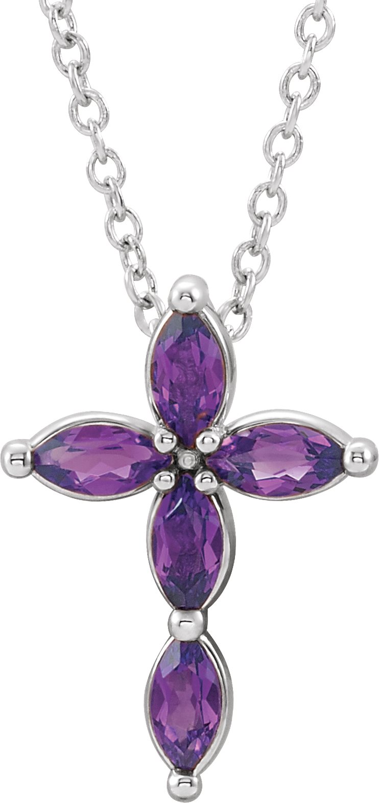 R42377 / Necklace / Set / 14K White / Amethyst / Marquise / 4 X 2 Mm / Polished / Genuine Amethyst Cross Necklace