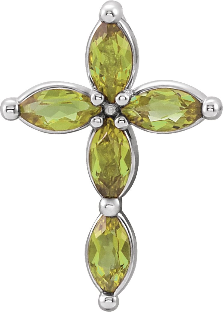 R42377 / Pendant / Set / 14K White / Peridot / Marquise / 4 X 2 Mm / Polished / Genuine Peridot Cross Pendant